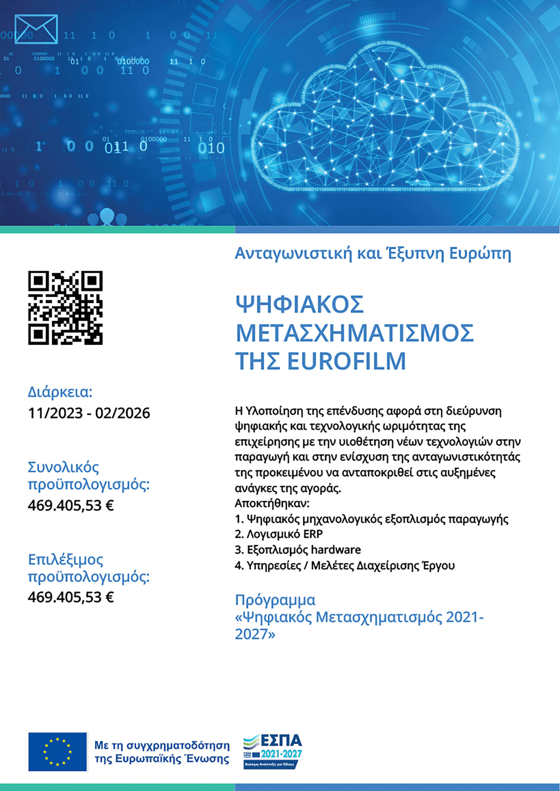 Η Eurofilm ΜΑΝΤΖΑΡΗΣ Α.Ε. εξειδικεύεται στην παραγωγή και εμπορία φιλμ πολυαιθυλενίου. Βελτιώνει επιμελώς τα υλικά που παράγει και πρωτοπορεί με καινοτόμα είδη. Τα προϊόντα μας είναι σχεδιασμένα αναλόγως των απαιτήσεων των πελατών μας.