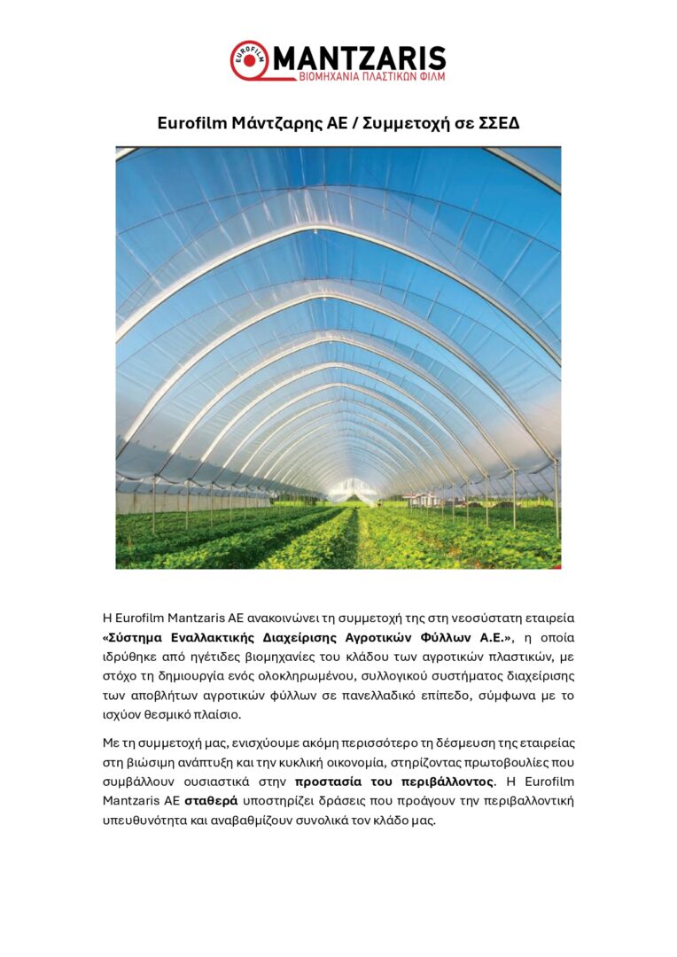 Η Eurofilm Mantzaris ΑΕ ανακοινώνει τη συμμετοχή της στη νεοσύστατη εταιρεία